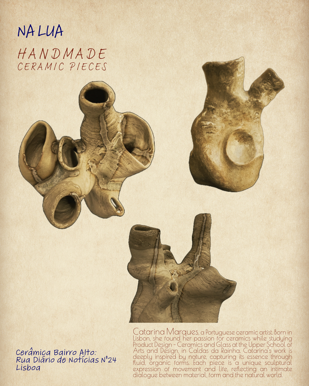 Catarina Marques a Portuguese ceramic artist. Born in Lisbon, she found a passion for ceramics while studying Product Design - Ceramics and Glass at the Upper School of Arts and Design, in Caldas da Rainha. Deeply inspired by nature, capturing its essence through fluid, organic forms, each piece is a unique sculptural expression of movement and life, reflecting an intimate dialogue between material, form and the natural world. The work of Catarina Marques as showcase at ‘The Tide Line’ exhibition by Lisbon Design Week After Hours.