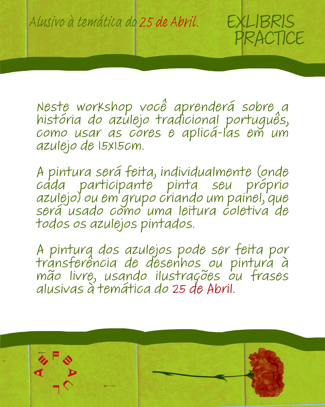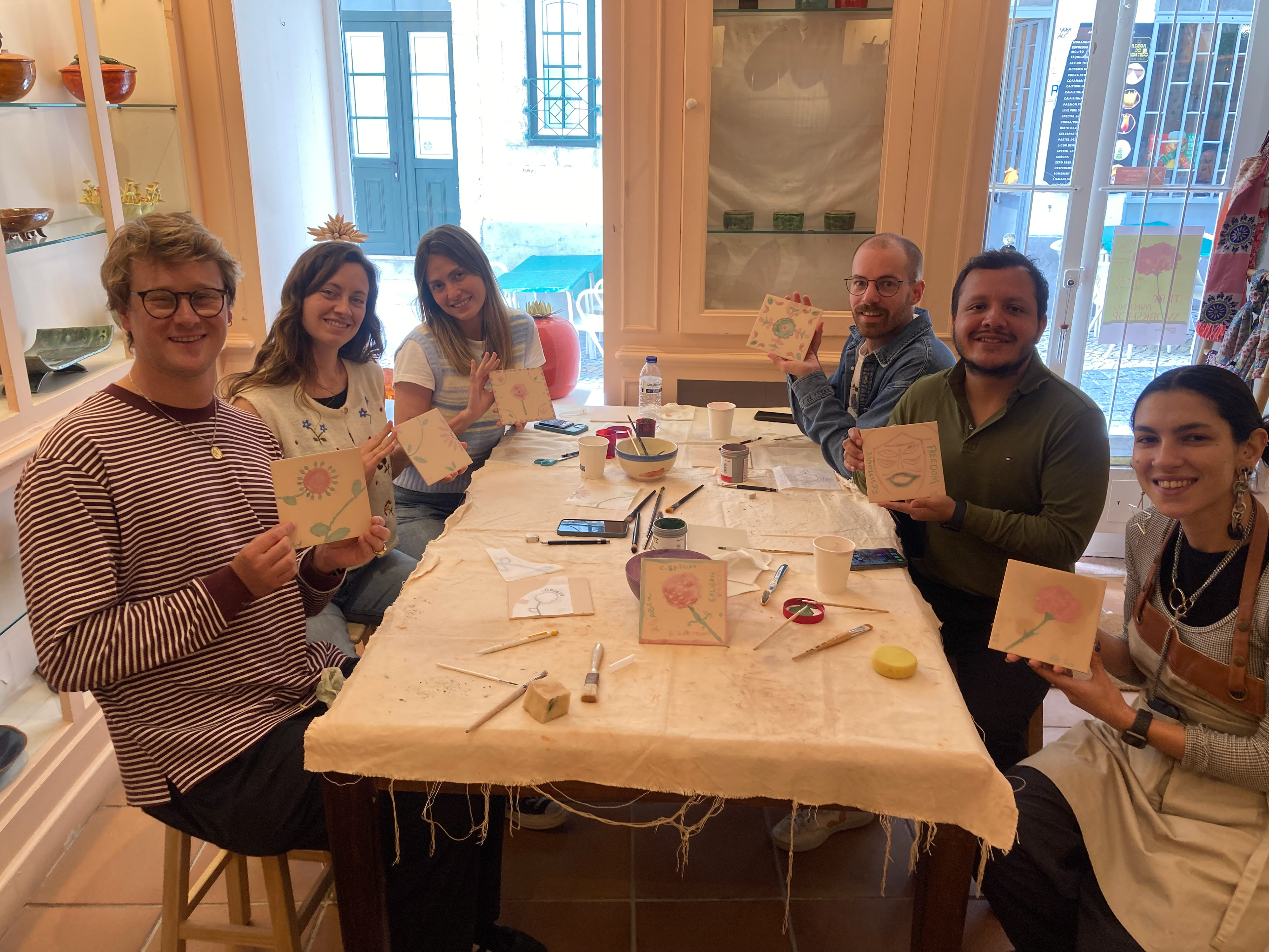 Tiles painting workshop with Portuguese ceramic artist Catarina Marques in Lisbon (Ceramica Bairro Alto). In commemoration of Portugal's Freedom Day on April 25th, the Day that Portugal celebrates the Carnation Revolution of 1974.